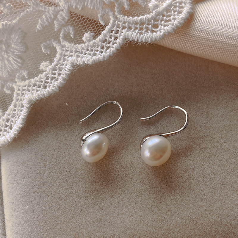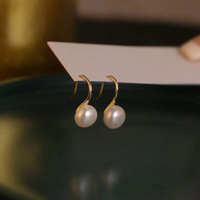 925銀フック真珠イヤリング気質純銀耳フックタイプアレルギー防止シンプル耳飾り女性大衆デザイン