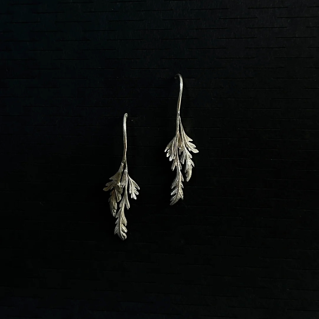 フランス秋葉耳フック女性植物系シンプルな木の葉ペンダント小衆中古風シダ葉ピアスS925銀針
