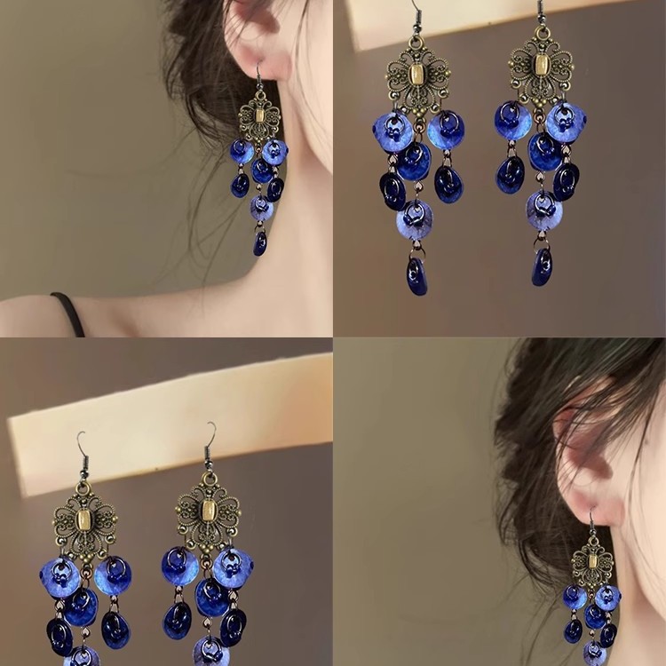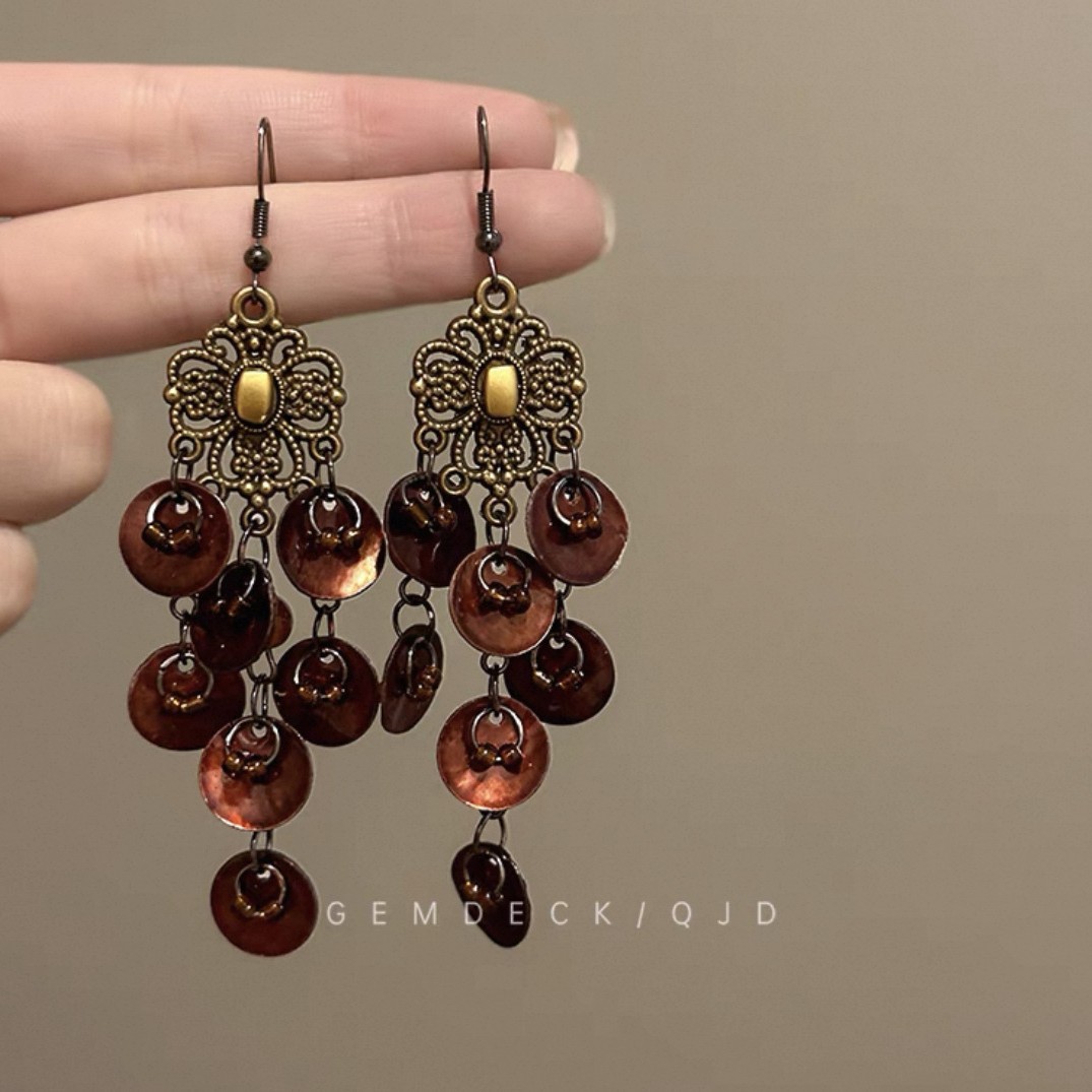 ボヘミアンレトロシェルタッセルイヤリングレディースロング多用途イヤリングエスニックスタイルハイエンドイヤリングイヤリング