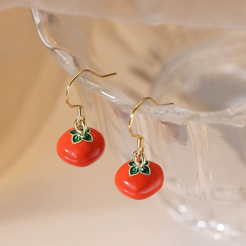 「好柿成双」精巧な柿イヤリング個性創意果物耳フック潮耳飾り新年プレゼント卸売り