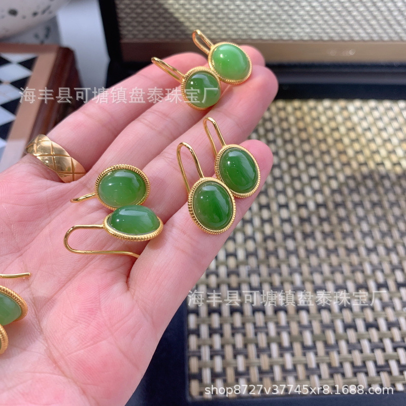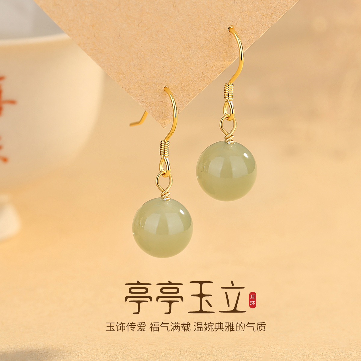 ティ奇亜実拍天然和田玉玉玉イヤリング女性S925純銀新中国式高級感気質耳フック潮