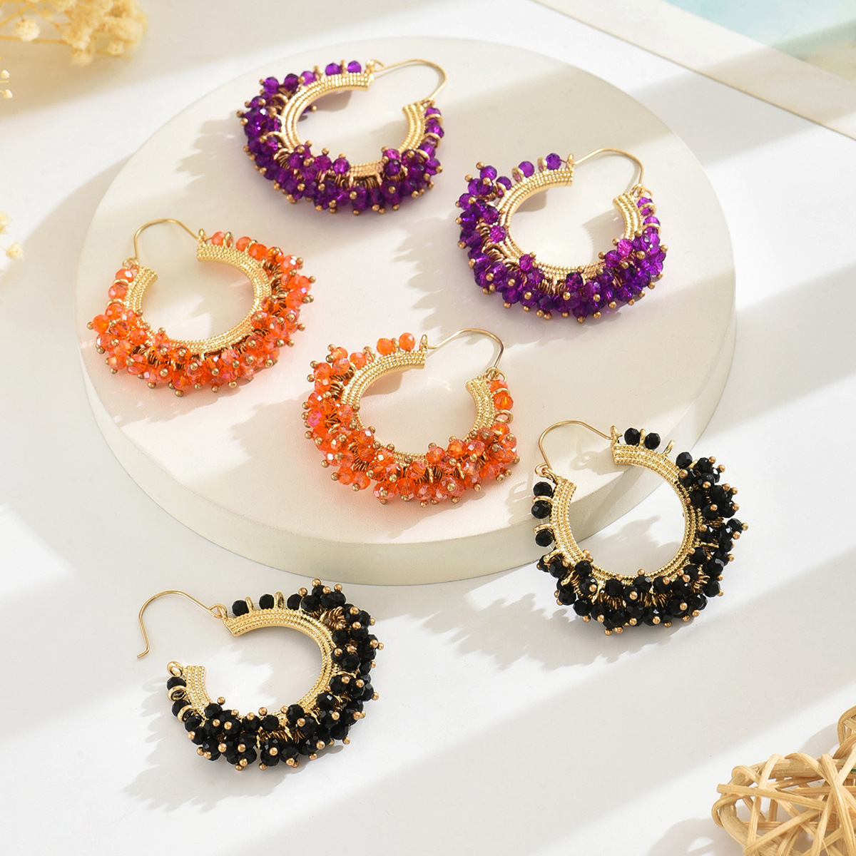 ライトラグジュアリーファッションカラフルなクリスタルビーズイヤーフックニッチハイエンド気質イヤリングヨーロッパとアメリカのクロスボーダー新しいイヤリング女性用