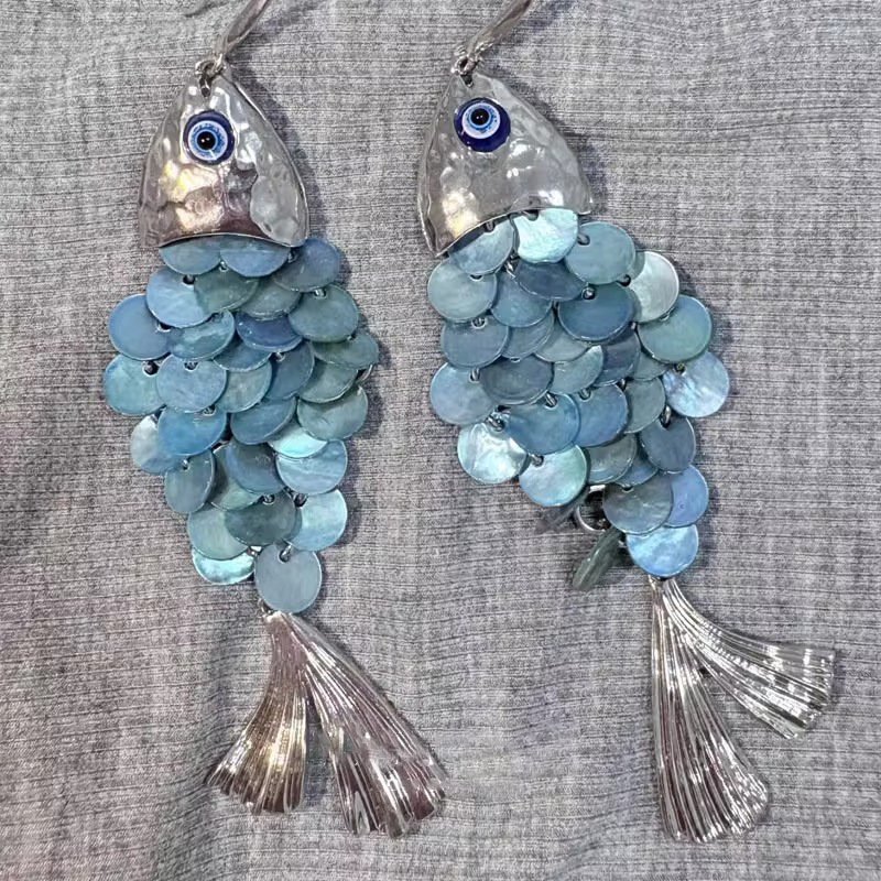 魚の形のシェルタッセルペンダントイヤーフック海辺のリゾートスタイルのイヤリングファッションパーソナライズされたニッチデザインイヤリング卸売