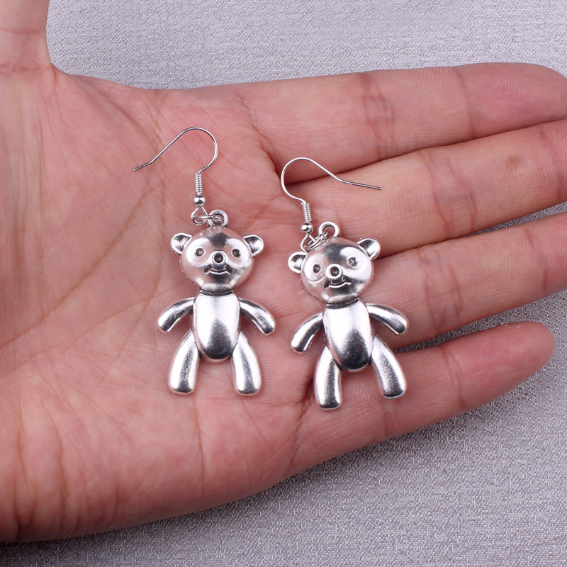 エリアレトロ合金耳フックペンダントかわいい熊円形耳クリップイヤリングdiyアクセサリー