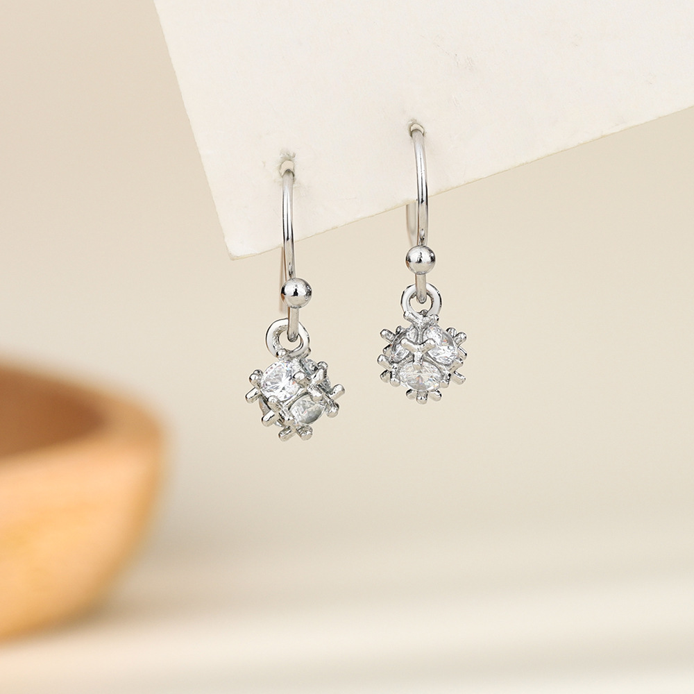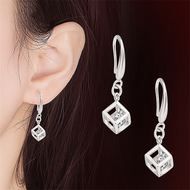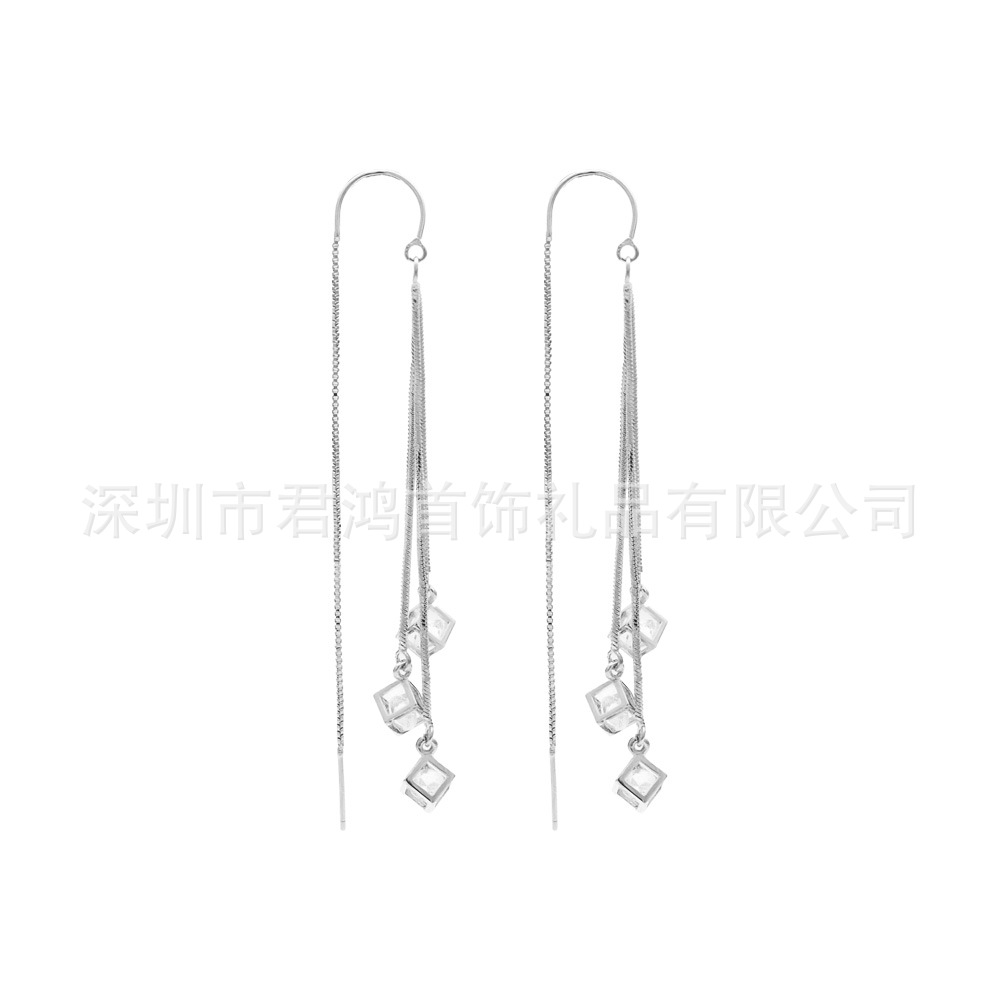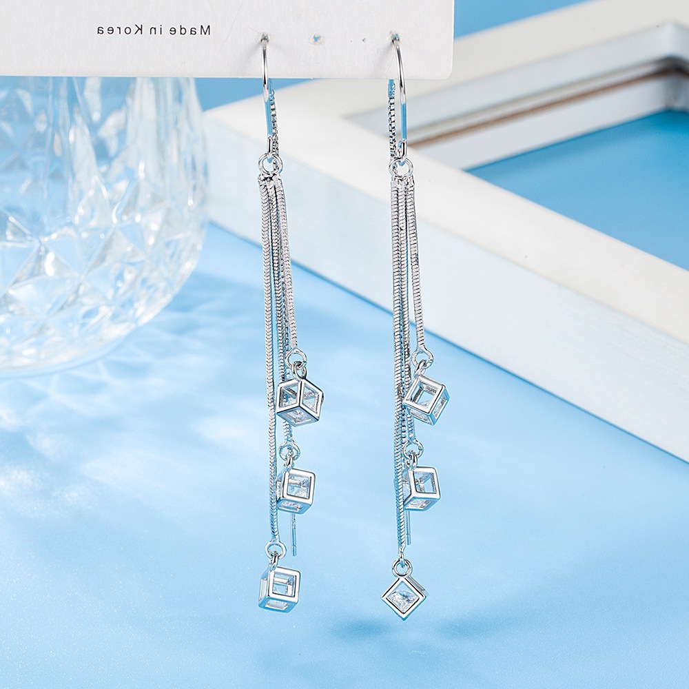 足銀990ルービックキューブのジルコンの耳のフックの長いタイプの箱のチェーンのフリンジの日の韓国版のイヤリングの簡単なネットの赤い大衆