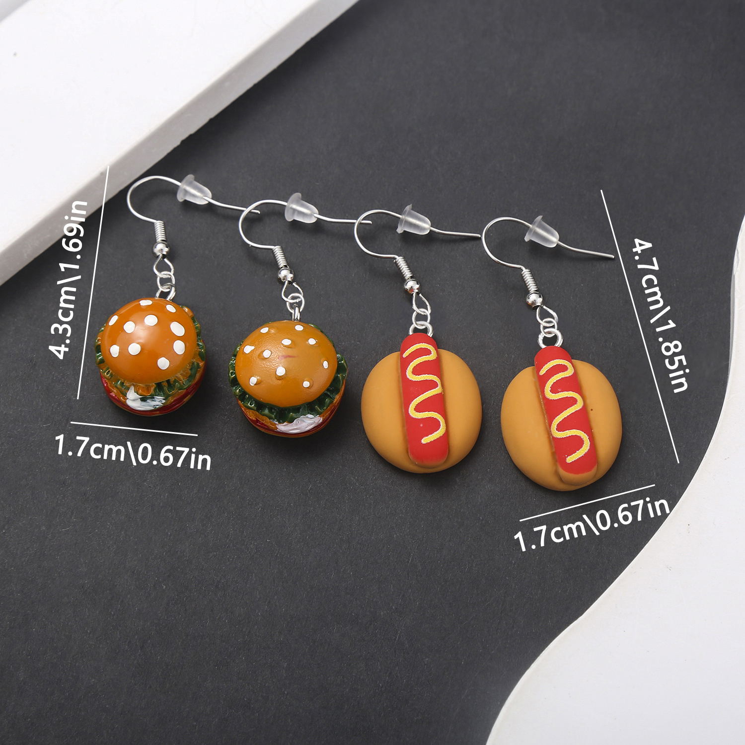 国境を越えて人気のあるアイデアは、樹脂ハンバーガーを食べるホットドッグパンのイヤリングセットの個性的なアクセサリーのイヤリングをシミュレートします