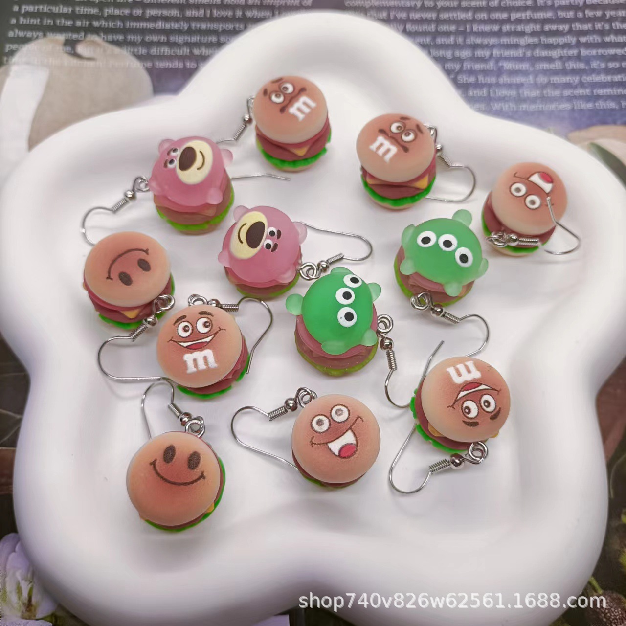 新型アニメ表情ハンバーグ食游シミュレーションミニ食品女性イヤリングDIY樹脂アクセサリー部品