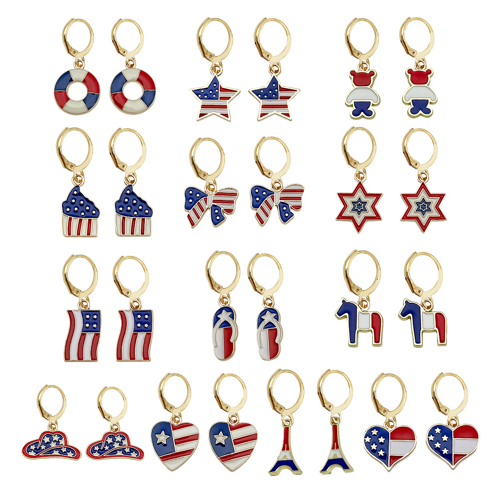 ヨーロッパとアメリカのクロスボーダー独立記念日ニッチジュエリーオイルドリップアメリカ国旗五芒星ピーチハートタワーベアペンダントイヤリング