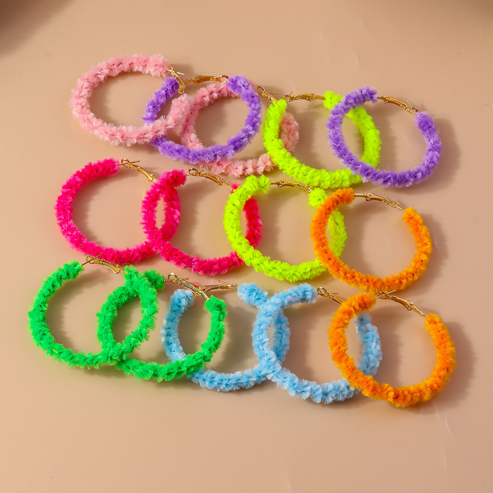 ヨーロッパとアメリカの国境を越えた新しいホットセールのシンプルでファッショナブルなマルチカラーツイストスティックイヤーフックイヤリングトレンディなハイエンドぬいぐるみリングイヤリング
