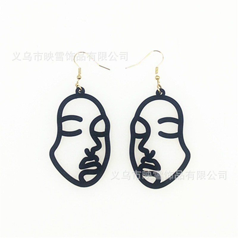 欧米のアマゾンの越境創意の個性の顔のイヤリングのレーザーは透かし彫りの木製の対称の耳のフックを切ります。