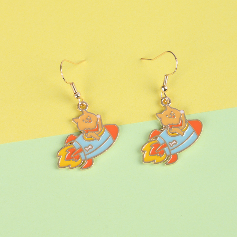 創意新品イヤリングアニメかわいい熊は喜んでロケットイヤーフック趣味ファッションアクセサリーに乗ります。