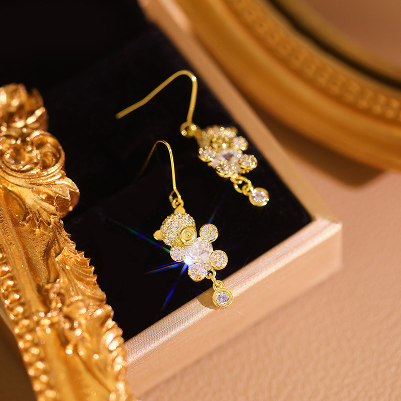 新商品の可愛くて甘くて精巧な熊のイヤリングの女性s925銀の針は少しジルコンのイヤリングを入れて高級感の耳フックの卸売りをします。