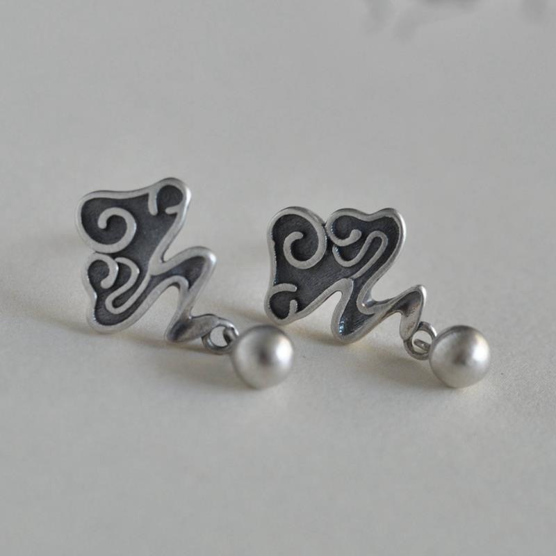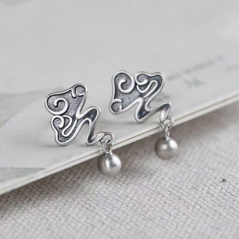 レトロな古い職人技のパーソナライズされた祥雲イヤリング、シンプルなニッチ文学ボール、女性用の多用途な気質イヤリング