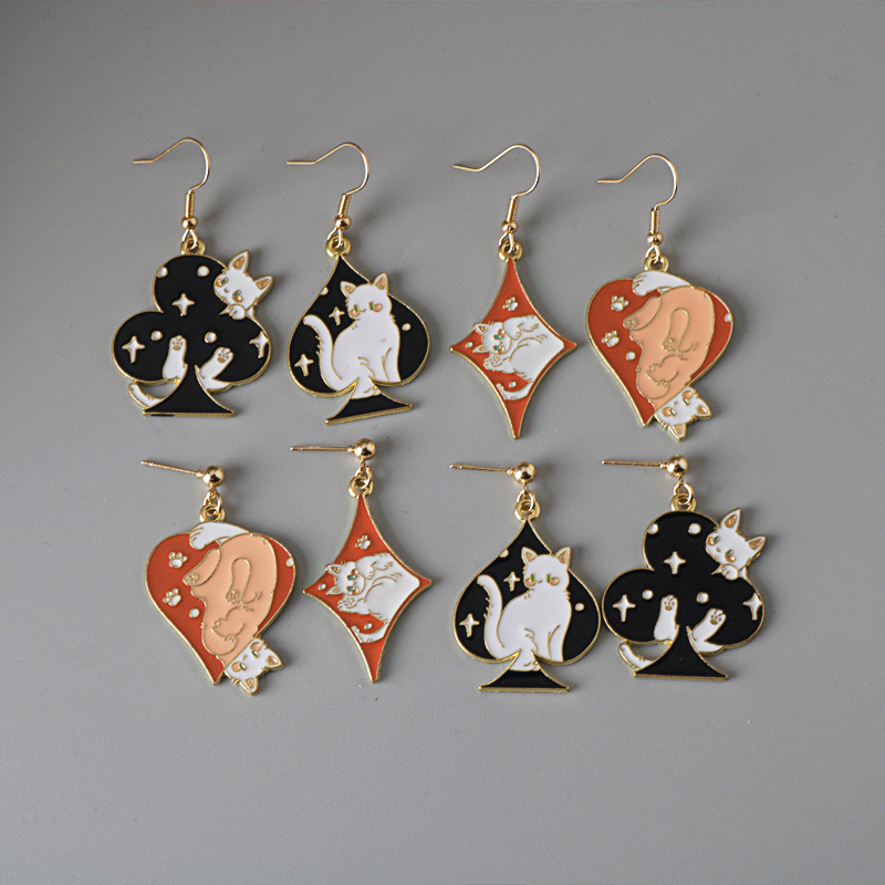 漫画のトランプの梅の花の四角の切れのスペードの赤い桃の耳のペンダントのいたずらな猫の子猫の耳のフックのイヤリング
