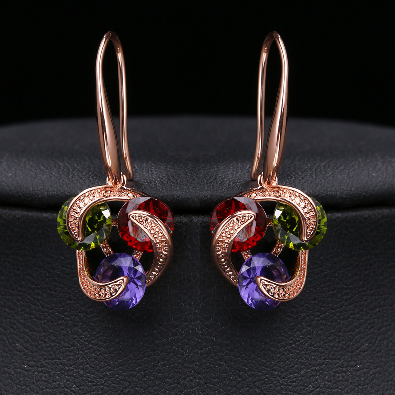 Sijing レッドアジサイルービックキューブイヤーフック立体多面ボールジルコンイヤリングクロスボーダーヨーロッパとアメリカンスタイルの孔明ロックイヤリング