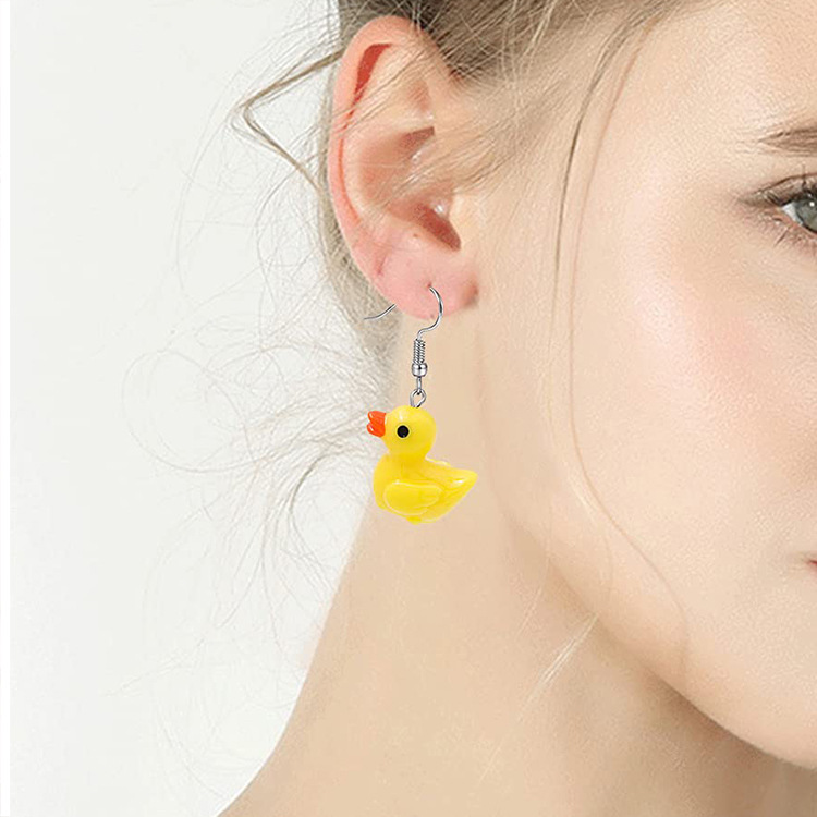 2023新型アニメかわいいシミュレーション立体小黄鴨樹脂イヤリング耳飾りデザイン感