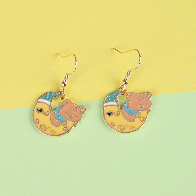 創意新品イヤリングアニメ眠っている月と熊の耳フック趣味ファッションアクセサリー
