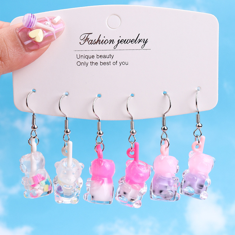 ヨーロッパとアメリカのクロスボーダージュエリー新しいファッション絶妙なクマミルクティーイヤリングセット動物ドリンクイヤーフックイヤリングジュエリー