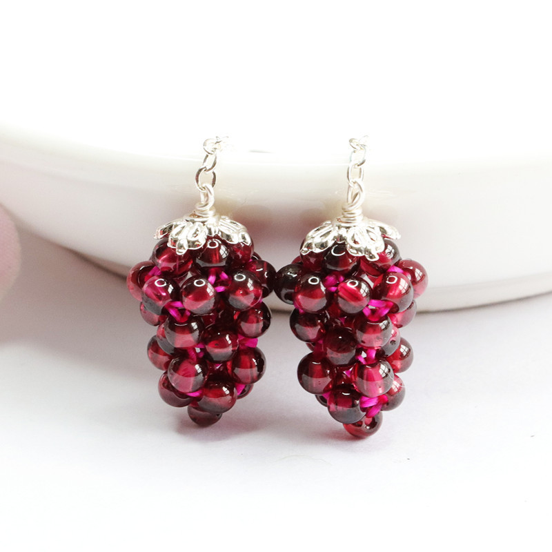 钰s925銀フック天然ガーネットピアス全透体ピアス女性生中継代発cb2040212
