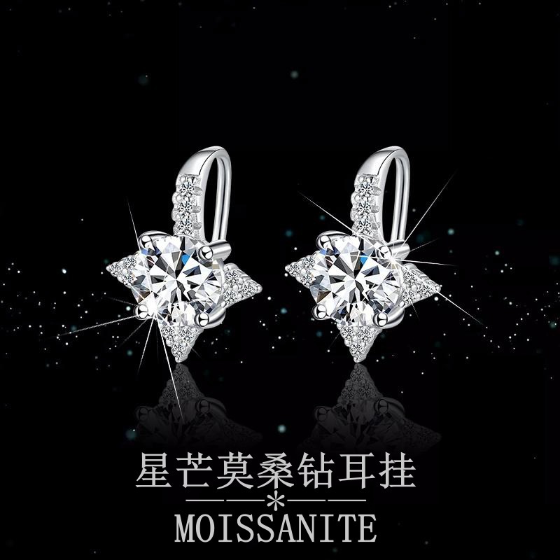 S925純銀ピアス莫桑石耳飾り軽豪華気質八芒星耳フック一カラットd色莫桑石ピアス