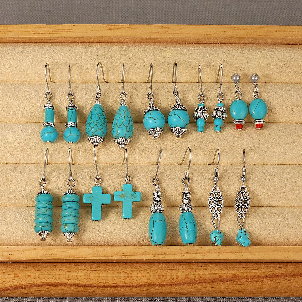 欧米のレトロなボヘミアンの民族風の松石のイヤリングの越境のファッションの緑の松石のフリンジのイヤリングの女性