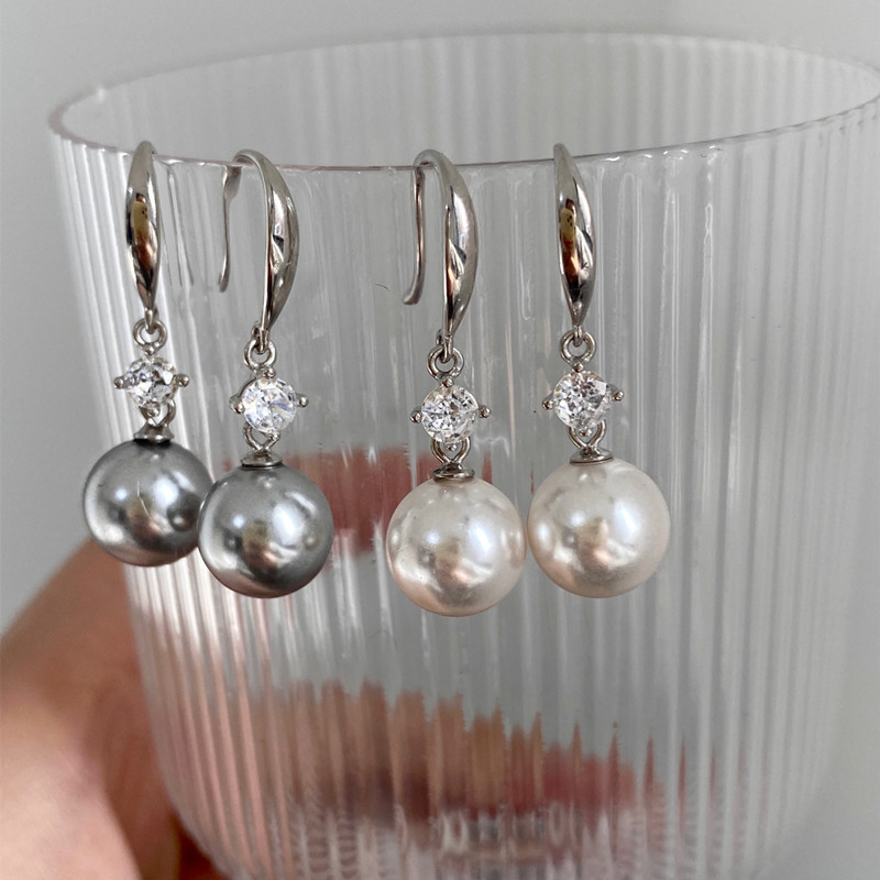 オーストリア施家真珠ピアスs925純銀ジルコンイヤリング