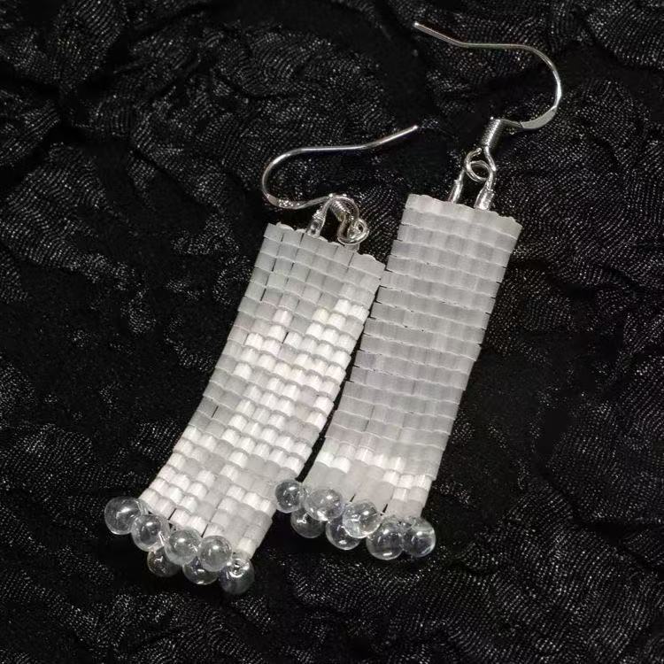 レトロ新中国式管状米珠流蘇イヤリング女性精致重工優雅百合高級感耳フック耳飾り