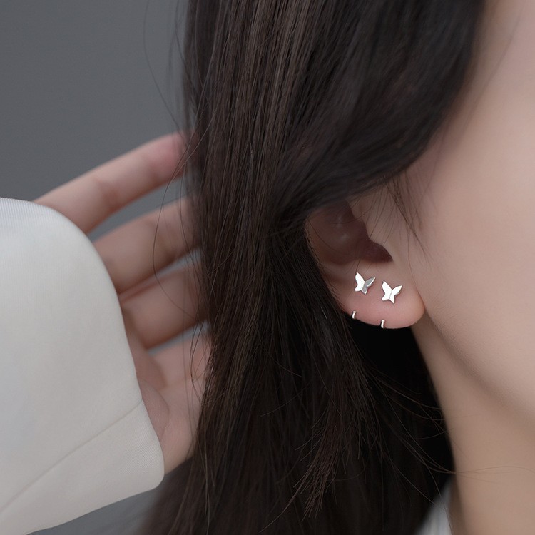 女性用立体蝶耳フック、シンプルでコンパクトな耳フックイヤリング、新鮮でかわいい、ファッショナブルで多用途、学生イヤリング