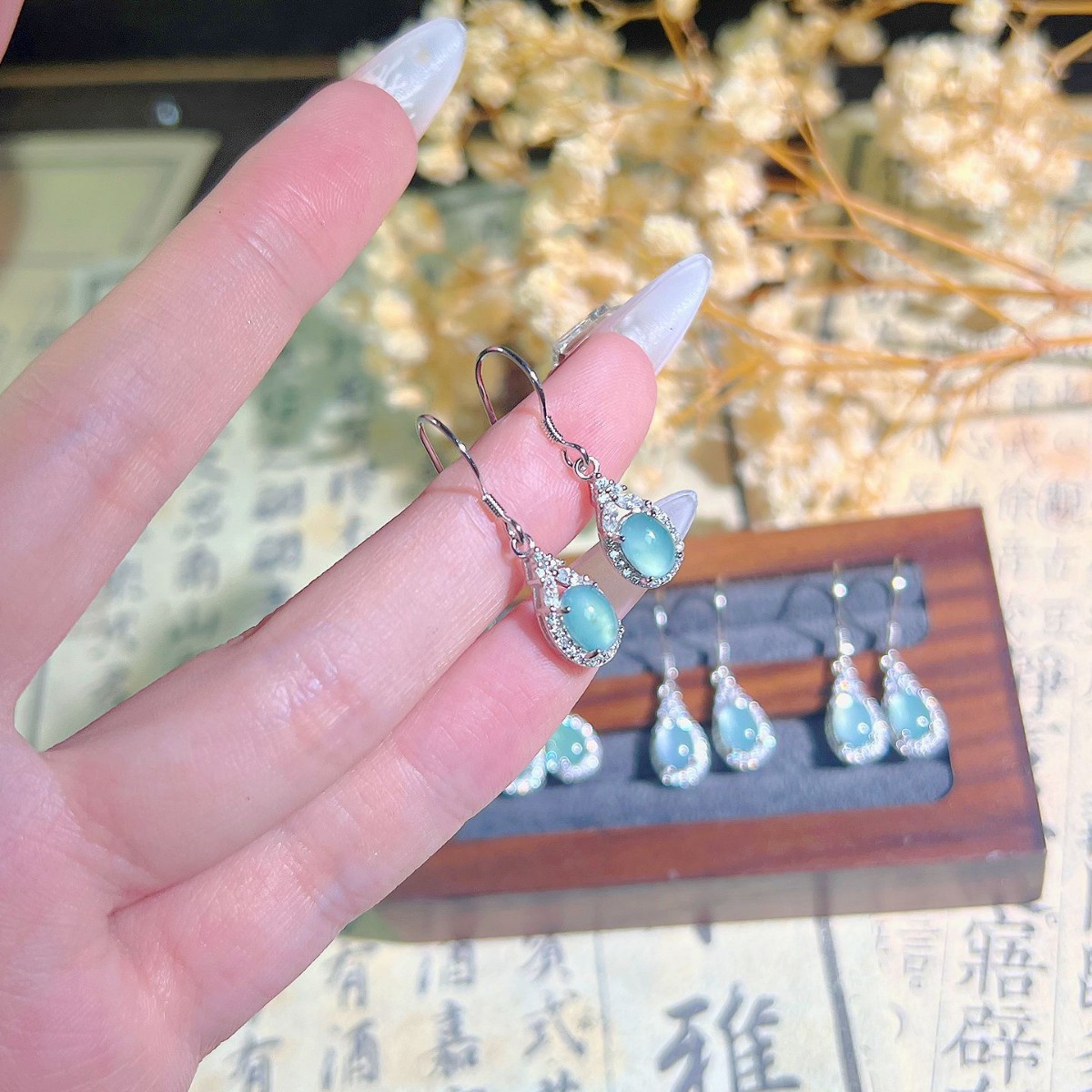 新中国式の天然の青い水の翡翠の水滴型のイヤリングの精巧な気質の小さい大衆の高級な軽豪華な組み合わせのファッションの耳飾り