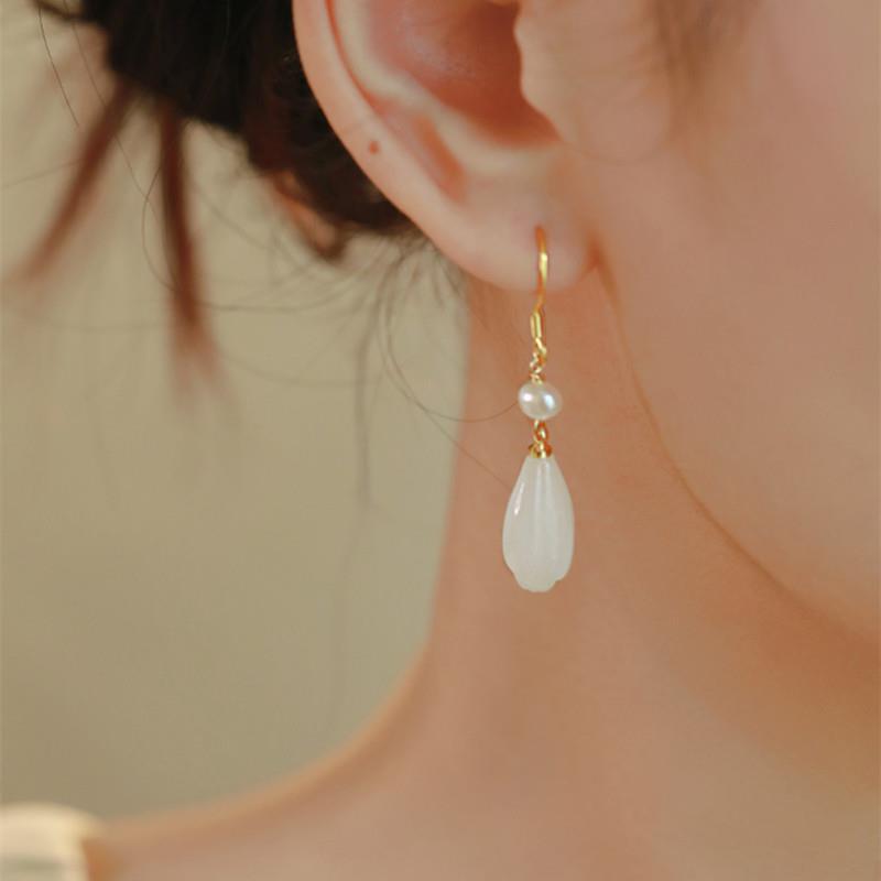 玉蘭と田玉のイヤリングの女性の大衆のデザイン感の気質は優雅です。2022年の新型の女性の夏の中国風です。