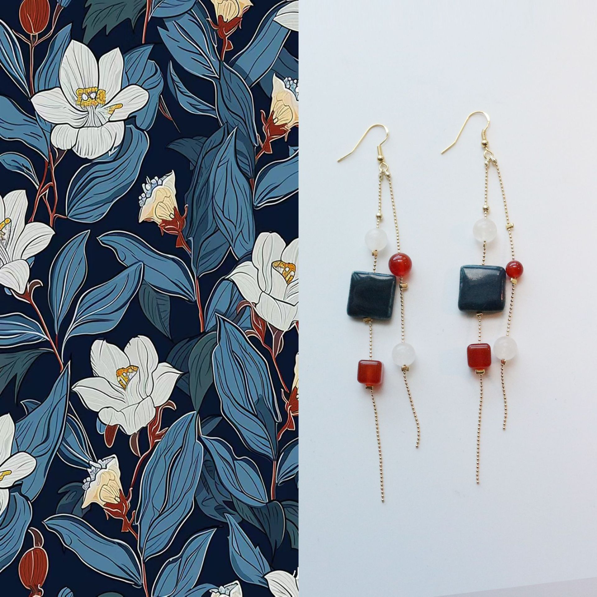 シンプルな気質の天然石ビーズの長いタイプのフリンジの耳のフックの復古の新しい中国式の女子学生の耳飾り