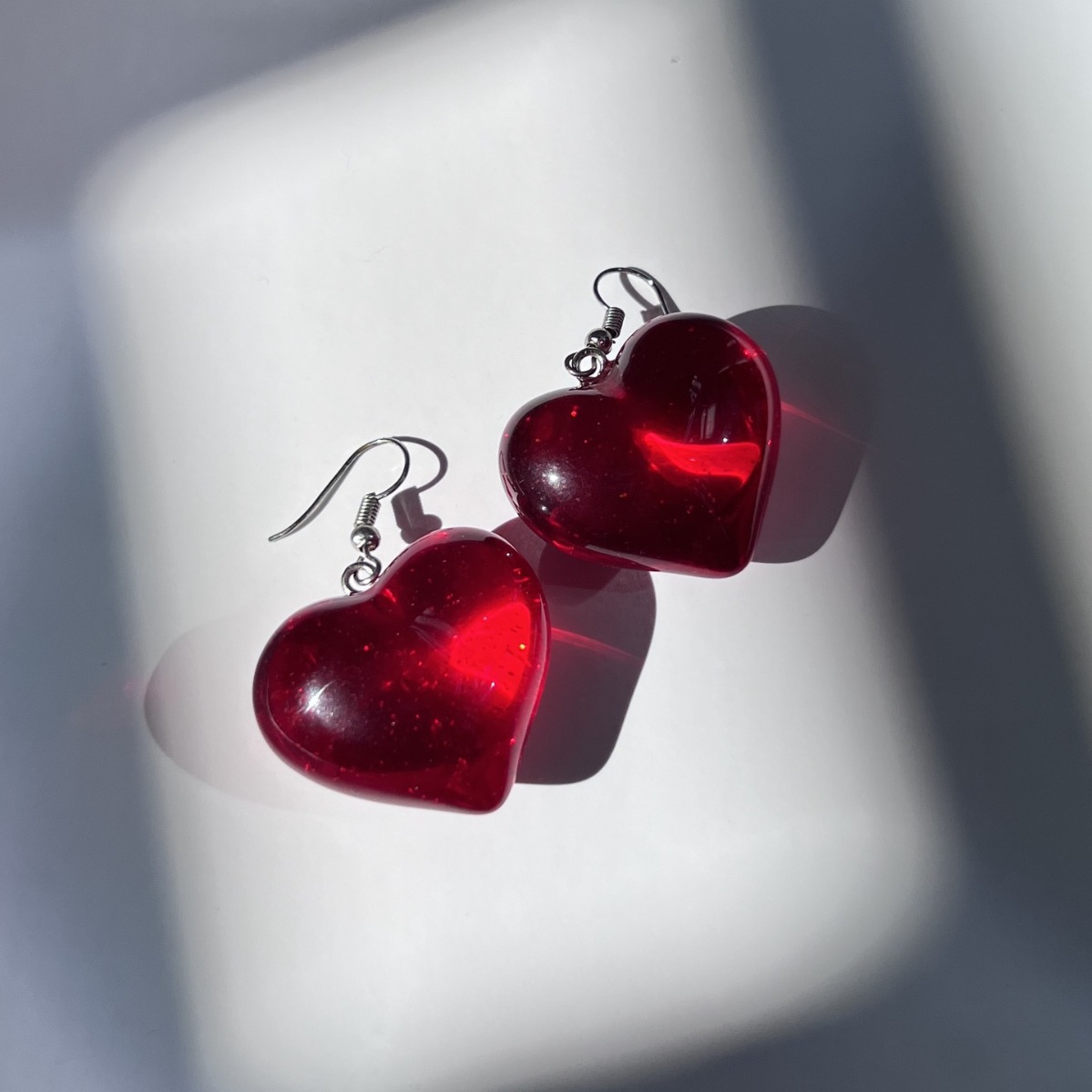 新しい国境を越えた甘いファッションアクセサリーのアイデアinsかわいい樹脂愛イヤリングハート型イヤリング