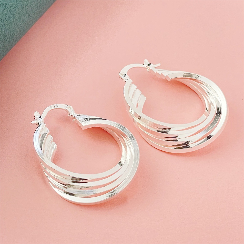 対外貿易宝飾品銅メッキ銀2.5*3.5cm幾何学耳ボタンイヤリング速売通temu震え音熱売美しい首
