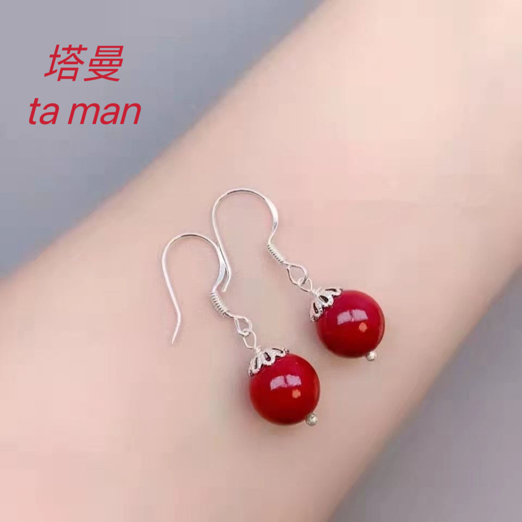紫金砂朱砂白銅耳フックアクセサリーピアス紫金砂玉気質イヤリング