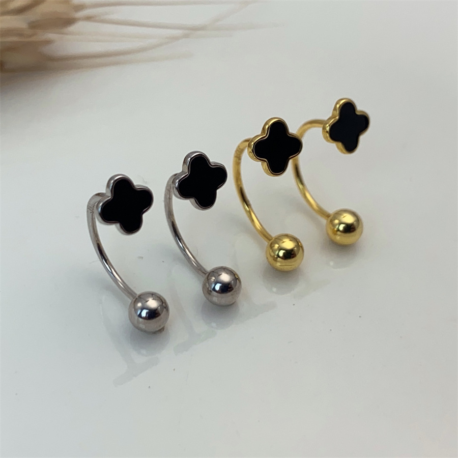 Silvers925純銀ピアス滴ゴム四葉草ねじ針耳栓フリー日韓個性イヤリングメッキk金