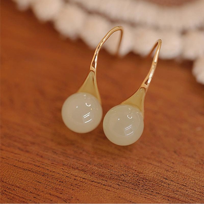 天然和田玉イヤリング女性古風復古耳フック高級感耳ペンダント2024年新作気質耳飾りプレゼント