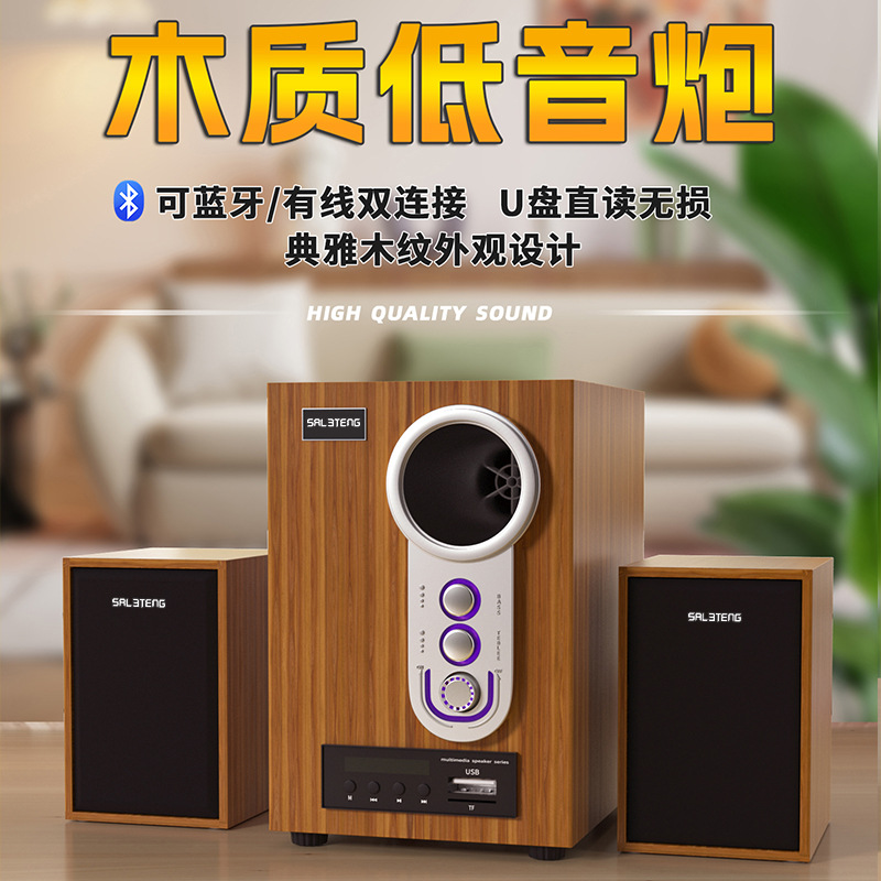 先科家庭コンピュータ音響家庭用テレビbluetooth木製スピーカー2.1デスクトップ映画館hifサブウーファ卸売り