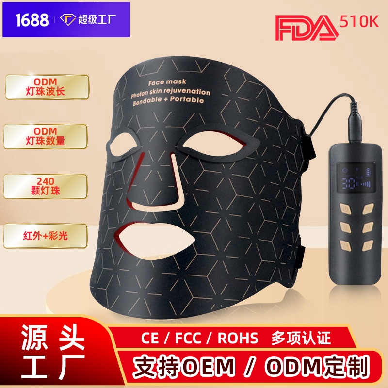 ネックライト付き越境LEDシリコン赤外線光フェイシャルマスク、家庭用若返りマシン、赤青光美容マスク