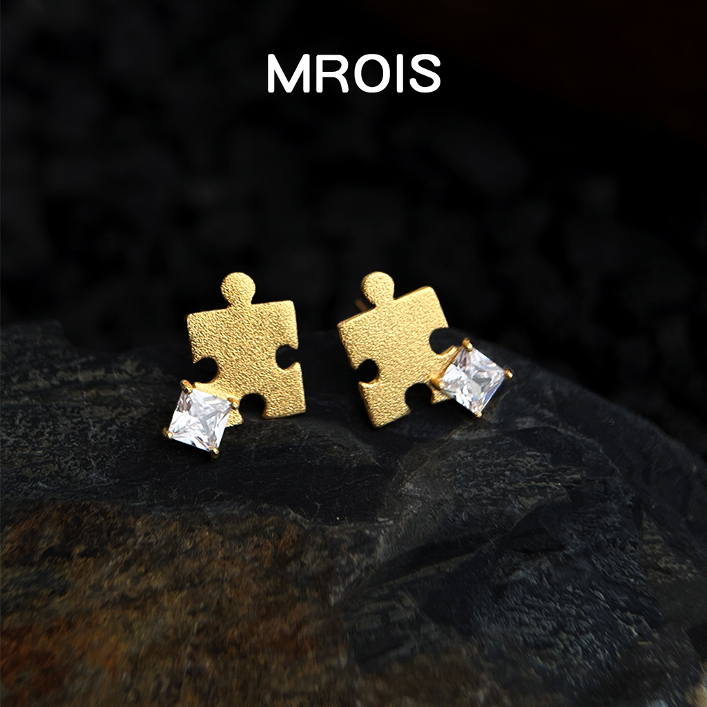 オリジナルパズル!厚いメッキ 18K リアルゴールドつや消しテクスチャ S925 シルバー針パーソナライズされたニッチデザインイヤリングインイヤリング