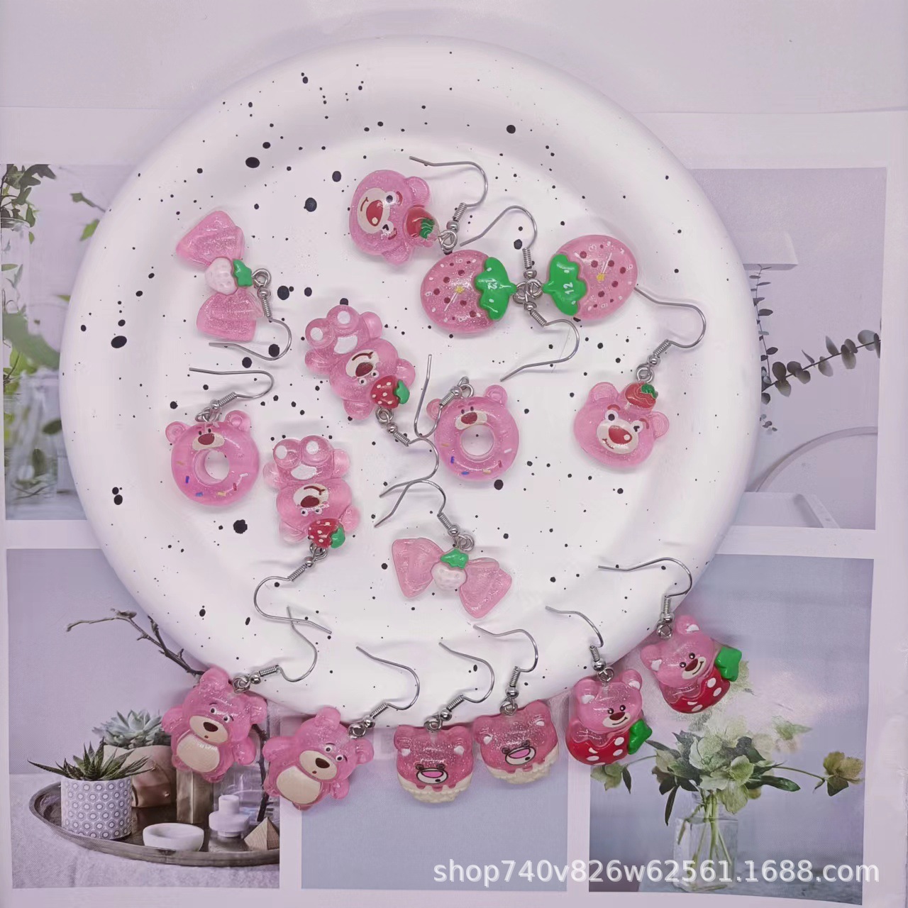 新作アニメ透色いちご熊シリーズ女性イヤリング耳フックDIY樹脂部品