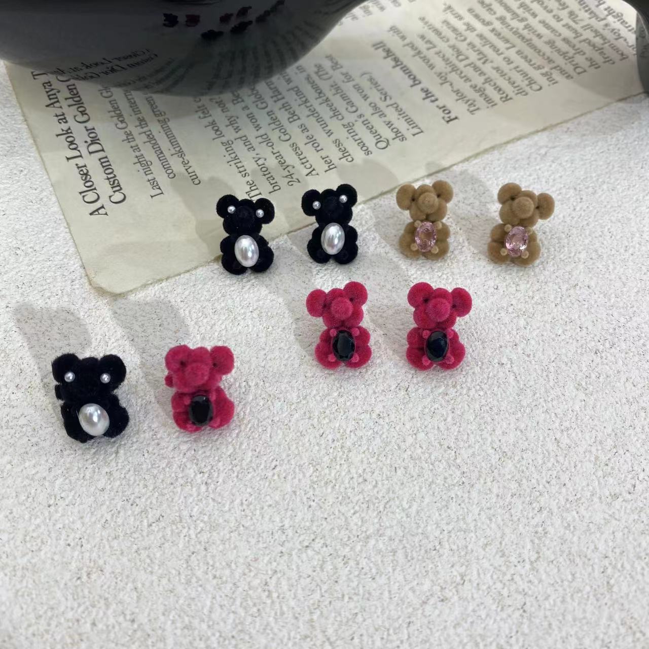 韓国の新型925銀針秋冬ベルベットの熊のピアスは小さくてシンプルなデザインでおしゃれな耳飾りをしています。