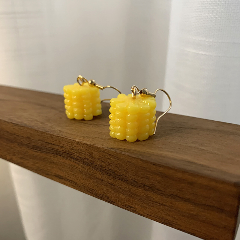 趣味食游ソフト粘トウモロコシイヤリング925銀フック耳穴なし耳クリップ個性的なトウモロコシ棒耳飾り