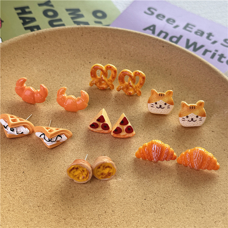 新しい 925 シルバー針漫画猫パンおもちゃパーソナライズされたイヤリングかわいいクロワッサンクリームケーキイヤリング