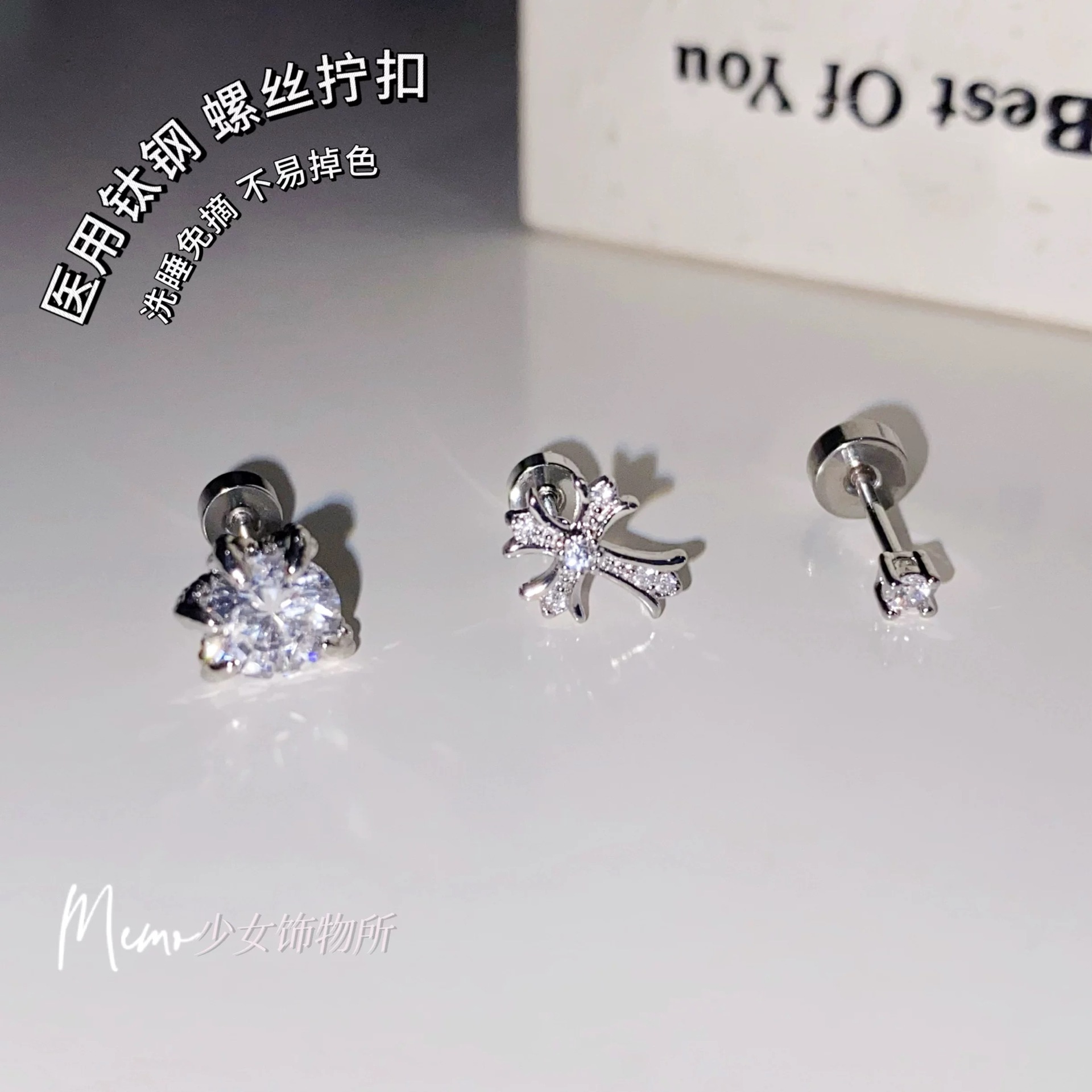 Kt猫猫粉ドリルクロスmini星かわいいチタン鋼愛小衆デザイン感個性耳ウォーム耳骨釘