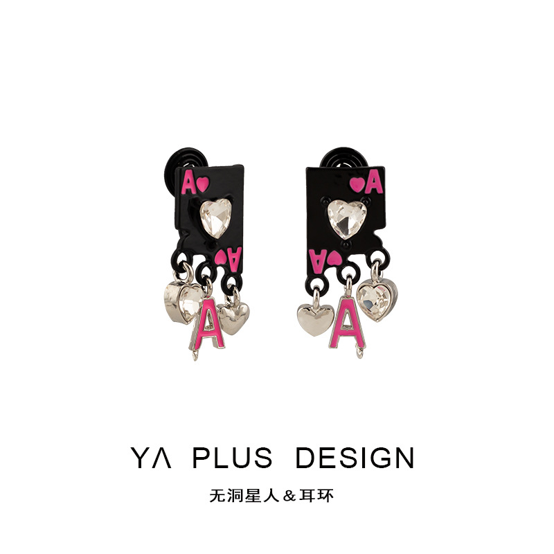 甘くてクールな辣妹風スペードAポーカーカードイヤリング、女性向けデザイン性が高く、ファッショナブルで個性的な蚊取り線香型イヤリング、ノンホールイヤリング