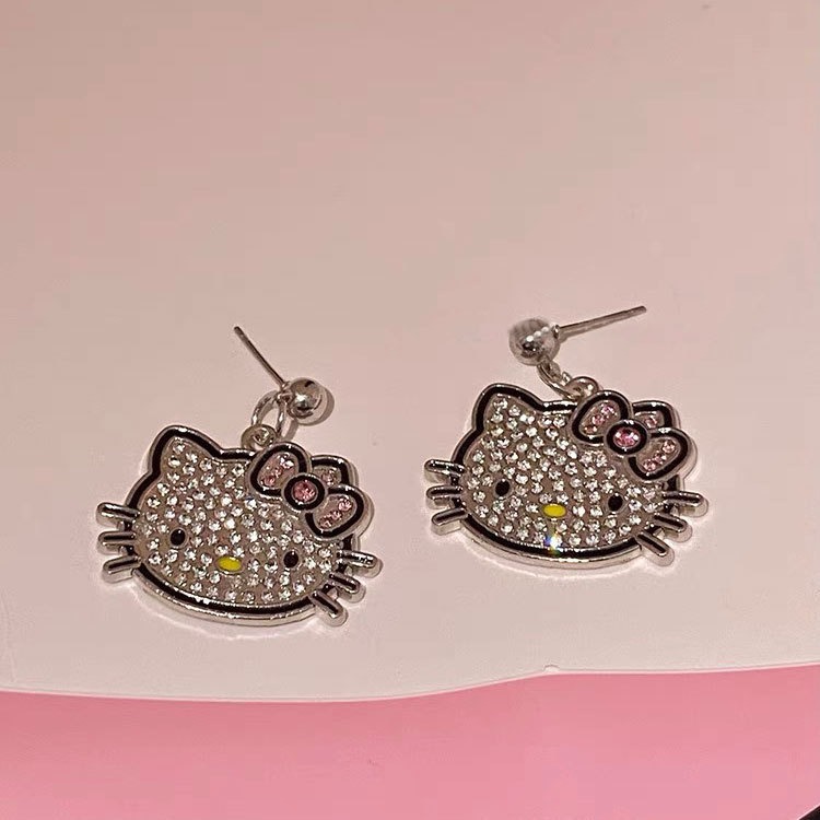 小衆の甘いクールなかわいいkt猫のダイヤモンドのペンダントのイヤリングの女性insの個性の気質y 2kの女性の蜜の小さい耳飾りの装飾