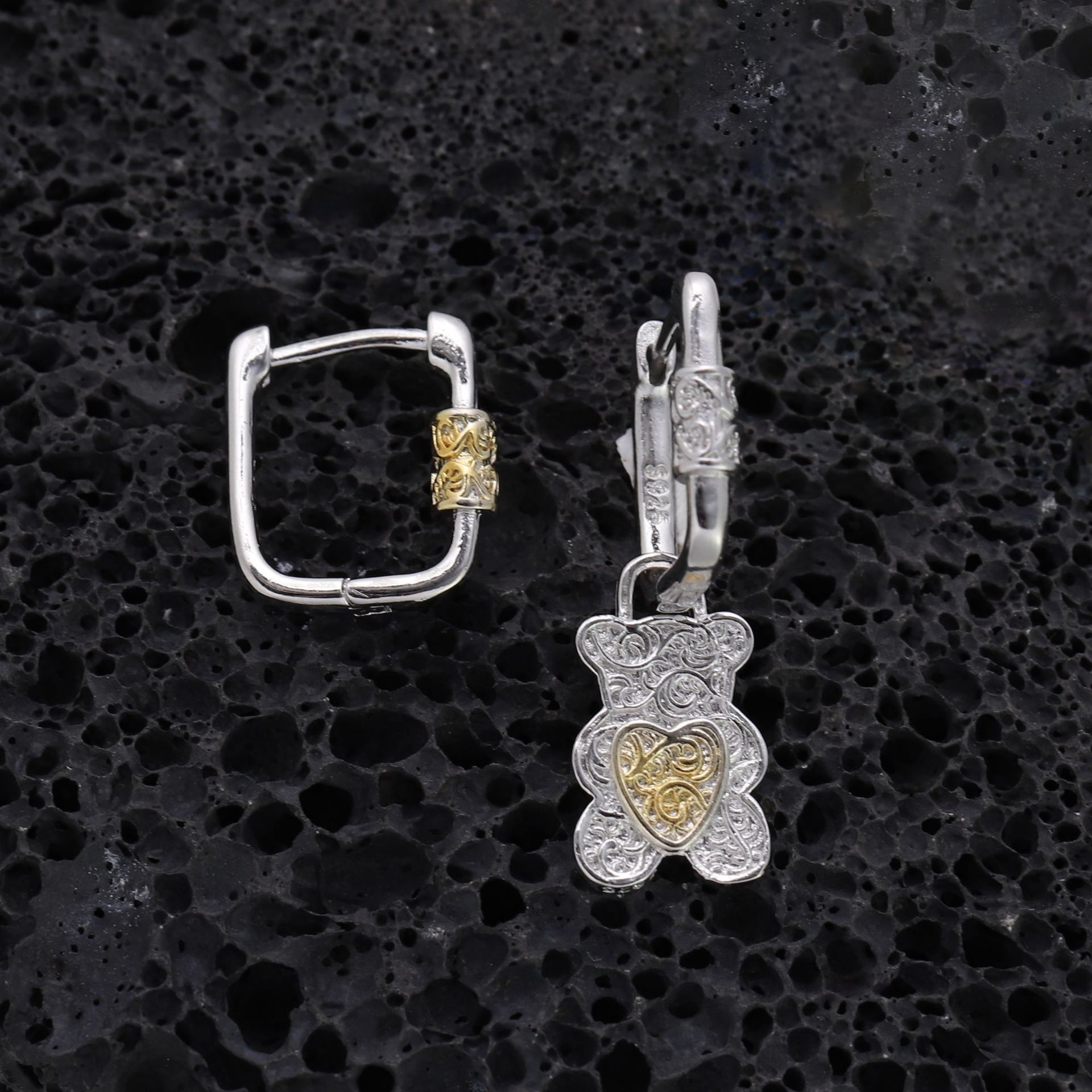 金銀色唐草紋愛熊AB耳ボタンイヤリング小衆デザイン感高級性冷淡風アクセサリー
