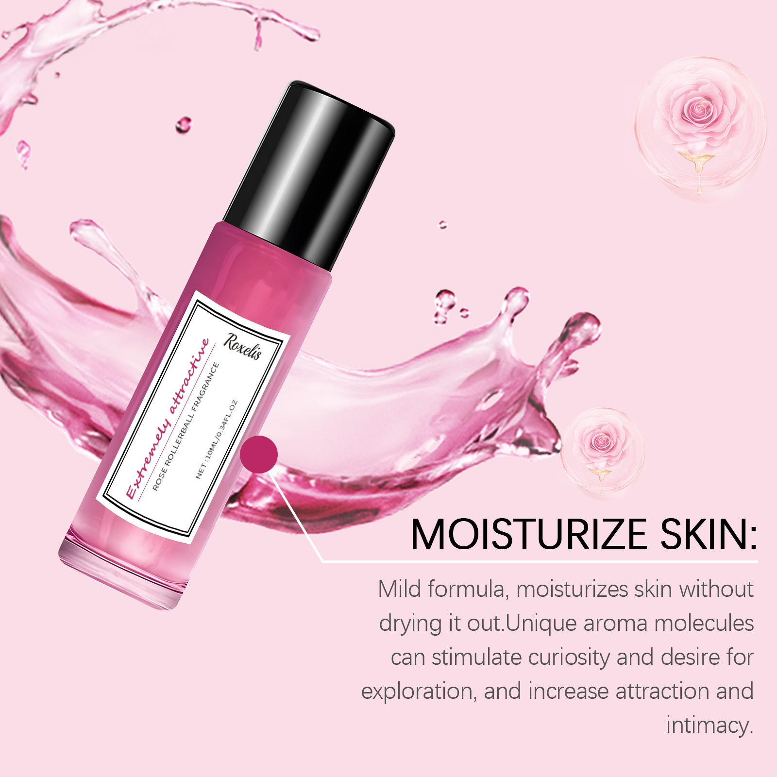 ローズ女性ロールオンフレグランス、フレッシュで軽い香り、魅力的な香り、ポータブルカップルデート香水