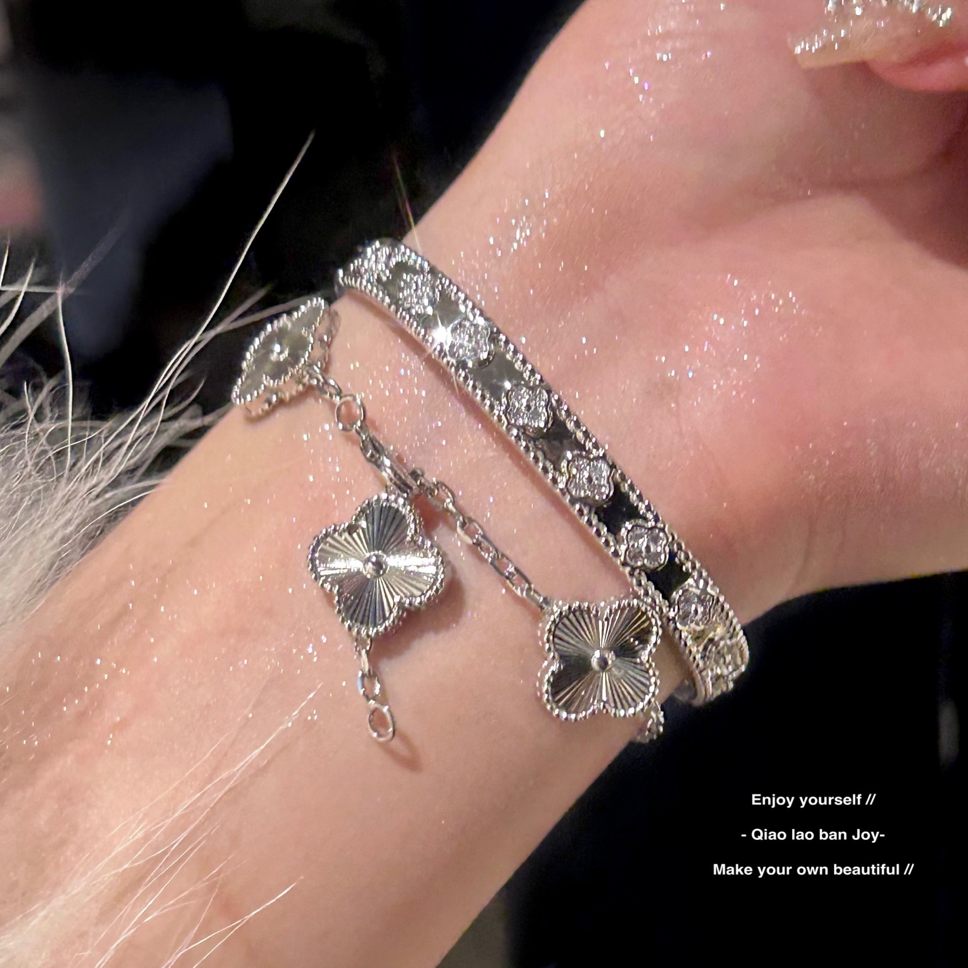 2024新品万華鏡四葉草手環ファッション女性ファッション高級感CNC閉口メッキ999純銀ブレスレット