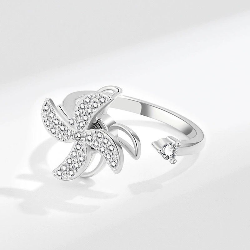 クロスボーダーの人気のある解凍可能な回転指輪の女性回転風車の花にジルコンの開口部があります。